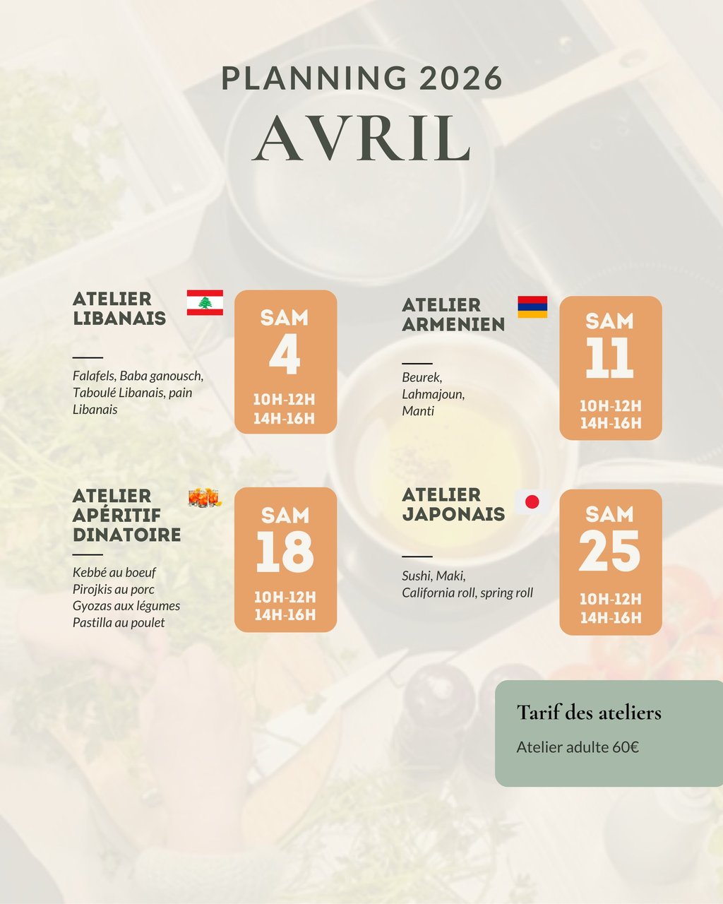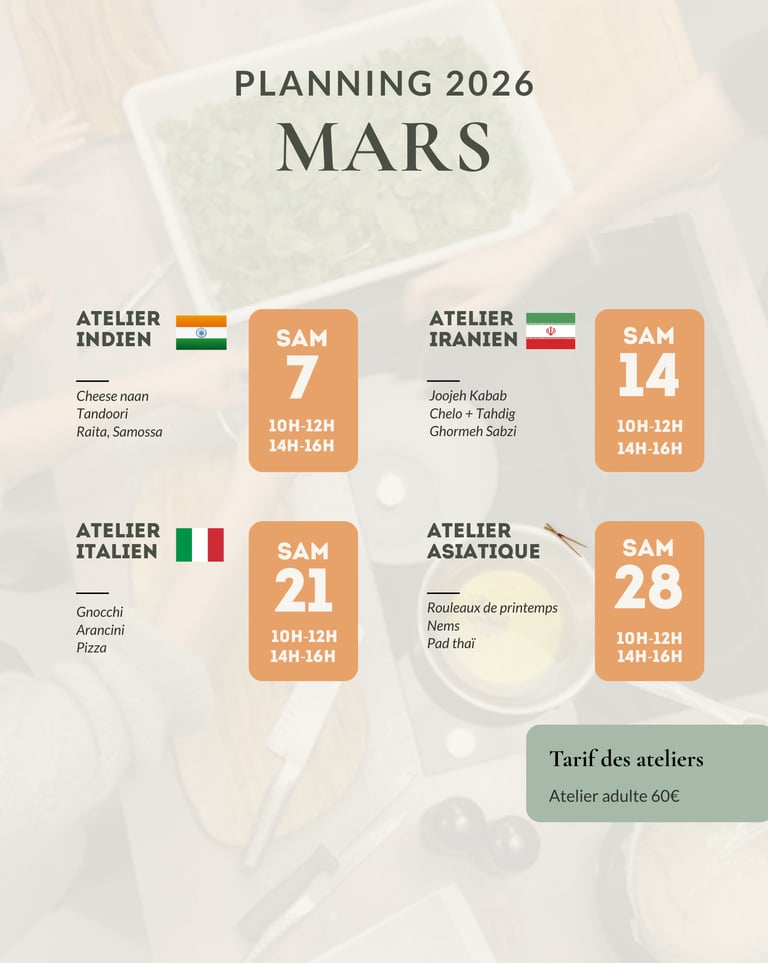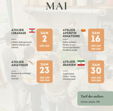 Retrouvez ici toutes les dates de mes prochains ateliers pour les semaines à venir.