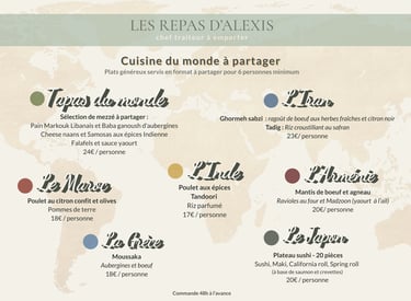 En complément des ateliers cuisine, je vous propose une offre de plats faits maison à emporter, inspirées des recettes et des cuisines du monde que je partage lors de mes ateliers.